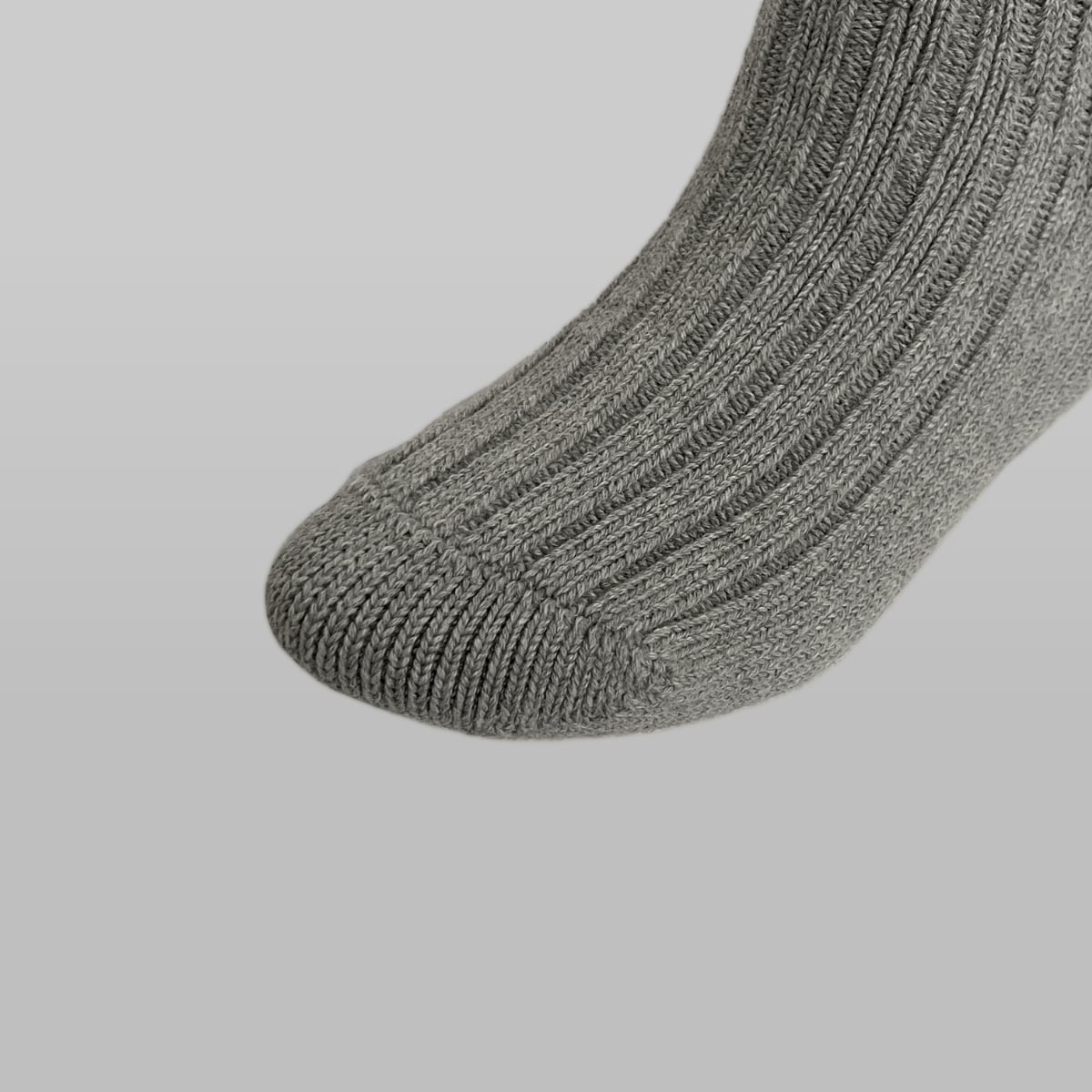 甲からレッグ部分にかけてリブ幅を変えた、独自の変則編みを採用しました。リブ特有の締め付け感を抑えつつ、テストを重ねて導き出した最適な丈感により、長時間履いてもズレ落ちにくい構造を実現しています。
