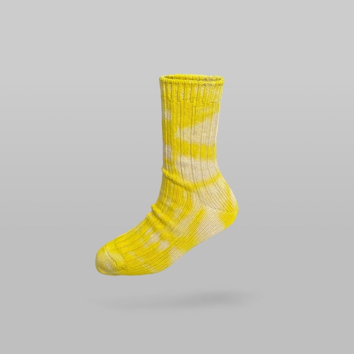 従来の染め商品よりも染まり方の個体差が大きいので、2足と存在しないアナタだけの靴下としてお楽しみください。