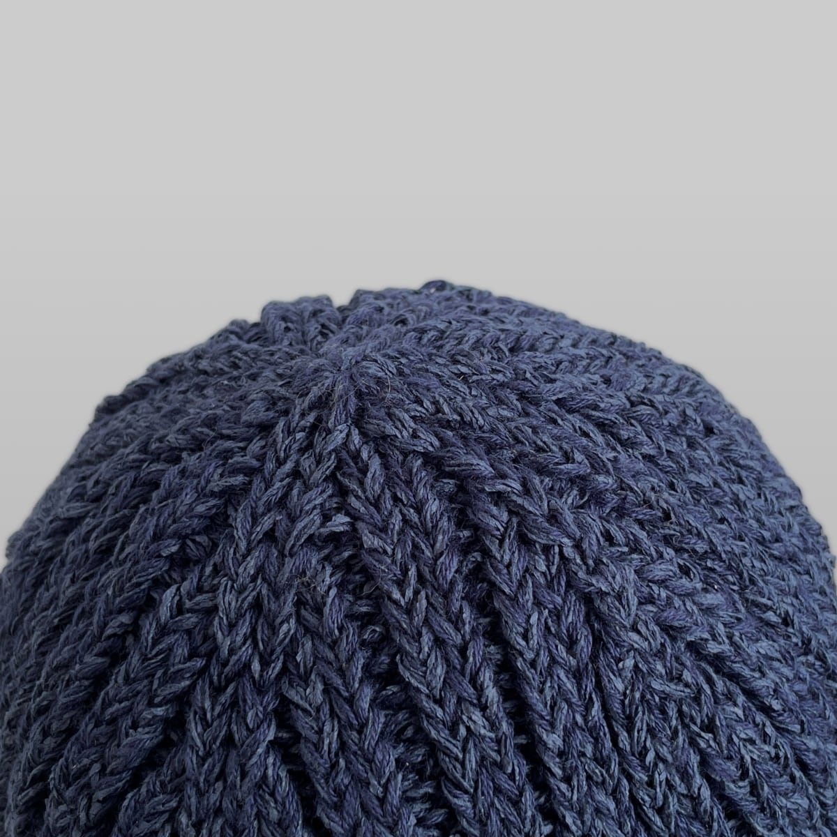 5ゲージの編み機でざっくりと編み立てた、豊かな存在感。その見た目のボリュームを良い意味で裏切る、驚くほどの軽さがこのニット帽の特徴です。素材には、和紙糸と、吸水速乾性に優れた綿アクリル糸を引き合わせました。和紙が持つ独特のシャリ感と調湿作用、そして汗を素早く逃がす機能素材が混ざり合うことで、熱がこもらず、常にさらりとした被り心地をキープします。暑さを忘れて、夏を愉しむ。和紙と速乾素材が織りなすドライな感覚を、ぜひその肌で実感してください。